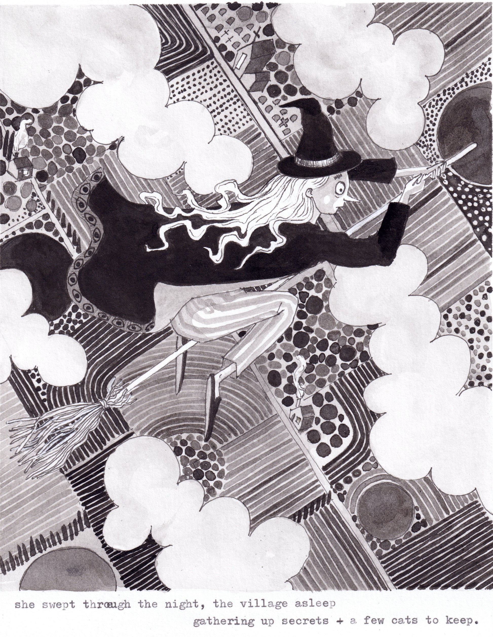 This is the original drawing was created using pen and Indian ink wash on heavyweight paper. It is a unique, hand-rendered piece, not a print or reproduction. Minor scuffs on the white border may be present from the handmade process.