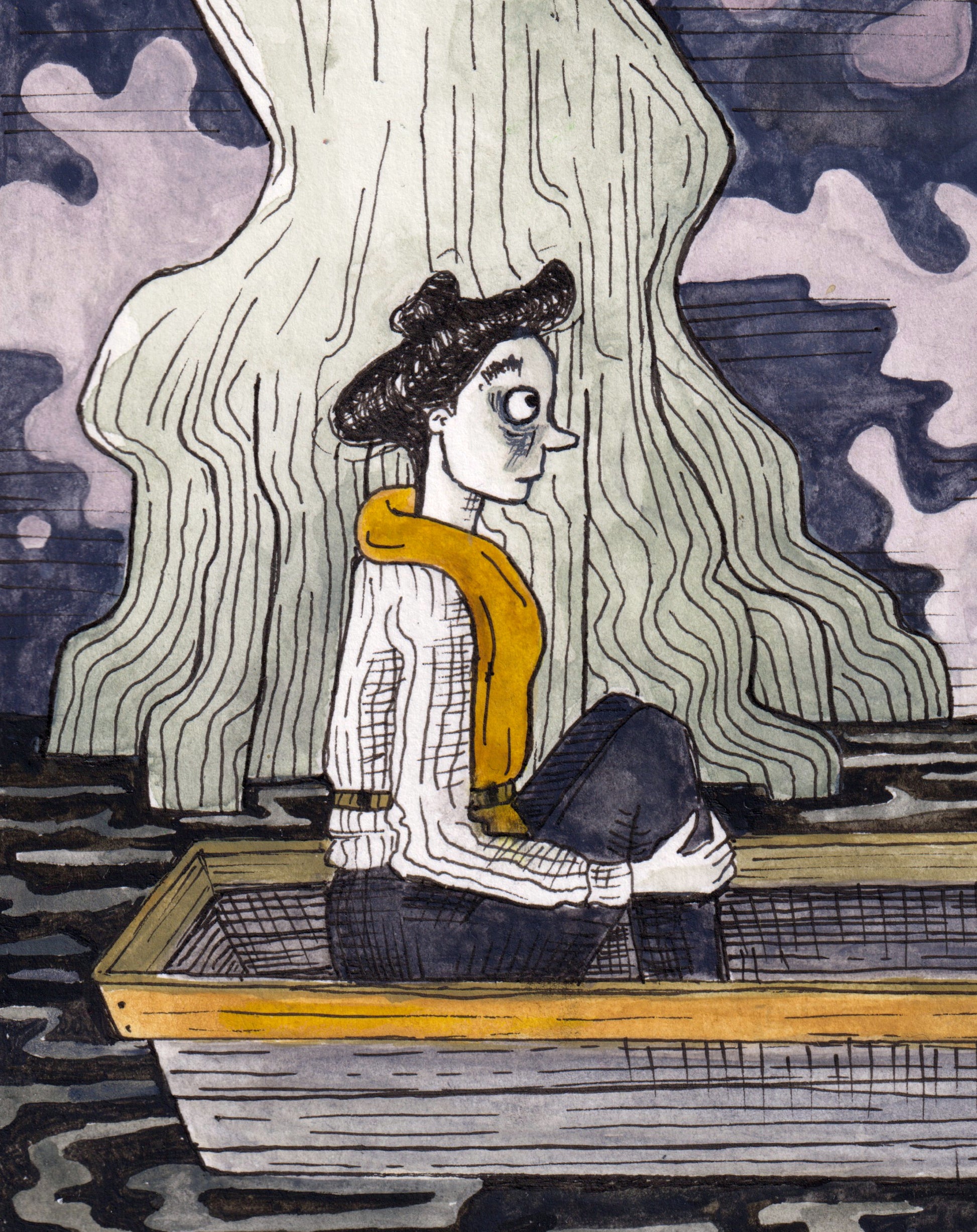 This is the original drawing of "death invited me to hell to see the scenery", created using ink and watercolour on heavyweight paper. It is a unique, hand-rendered piece, not a print or reproduction.