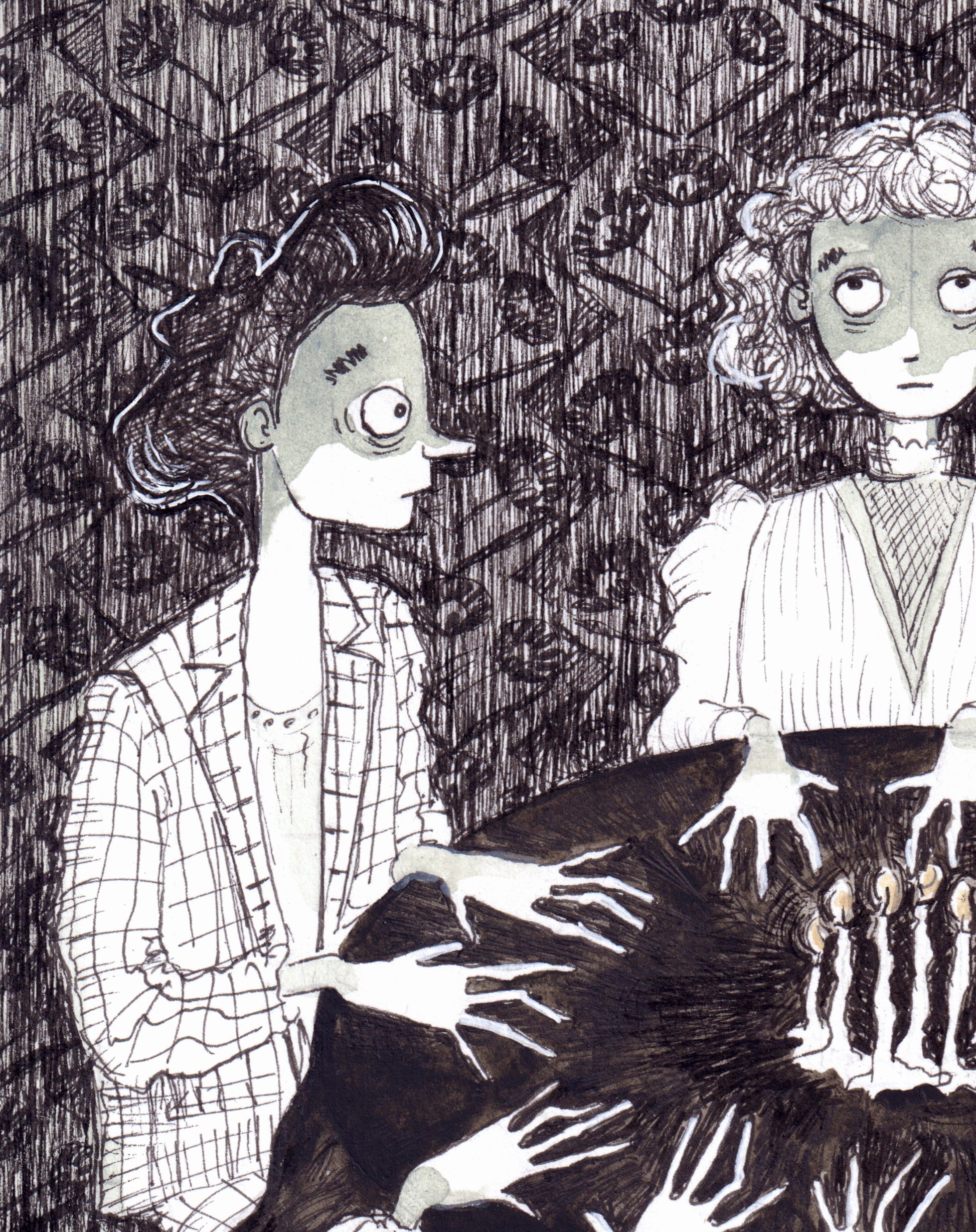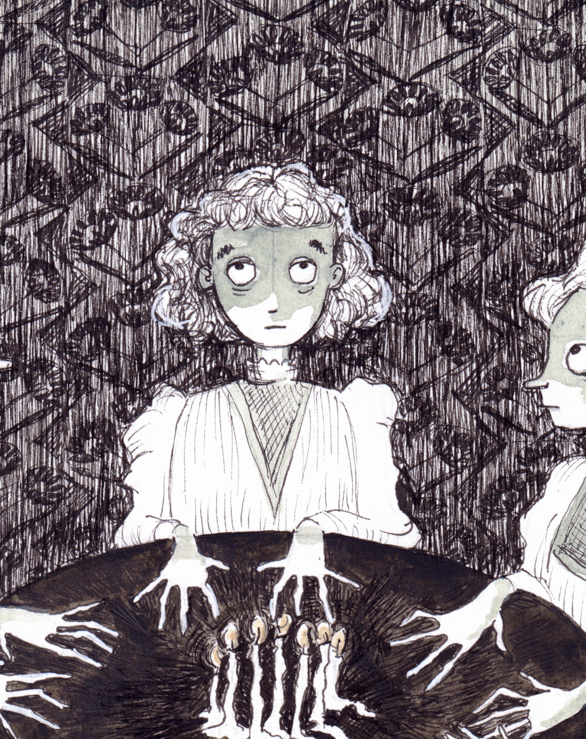 This is the original drawing of "i went to a seance, the candles were lit", created using ink and watercolour on heavyweight paper. It is a unique, hand-rendered piece, not a print or reproduction.